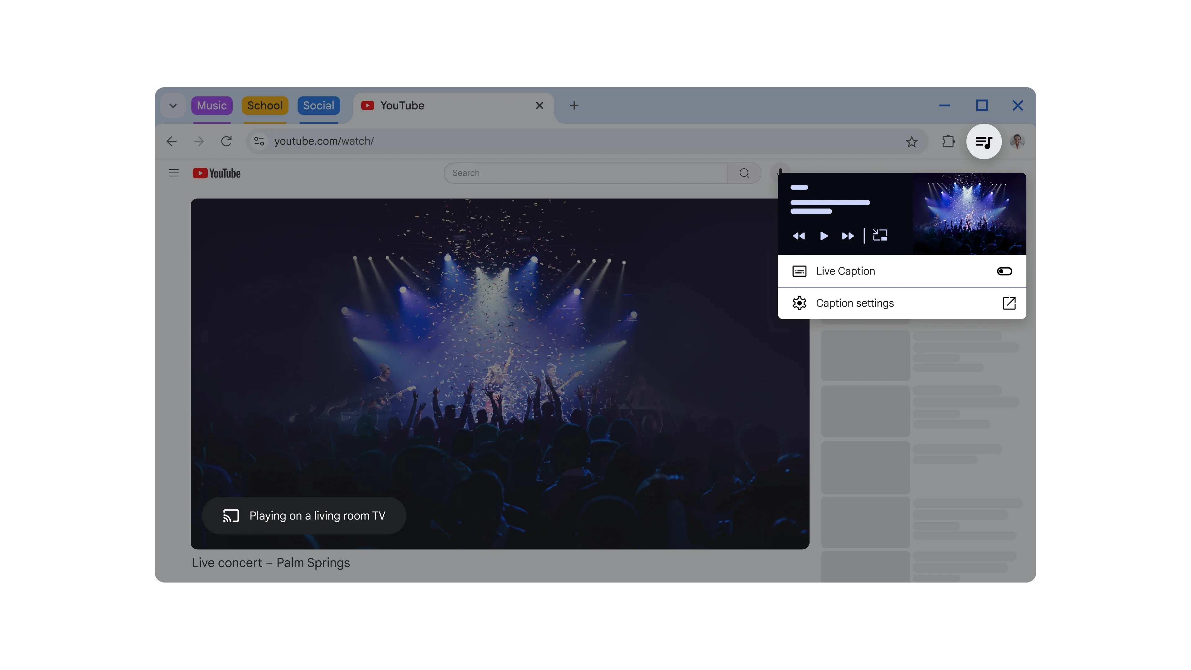 A concert video is put into picture-in-picture mode.